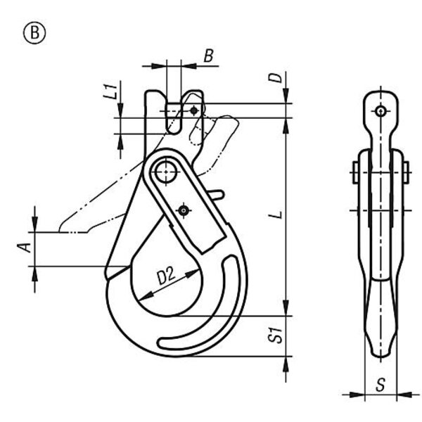 SICHERHEITSLASTHAKEN MIT GABELKOPF, FORM:B STAHL, FT=2500