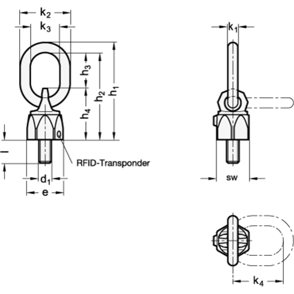 Die Anschlagwirbel GN 5860 sind drehbar kugelgelagert. Durch den beweglichen Ring nehmen sie Lasten in jeder Zugrichtung auf.