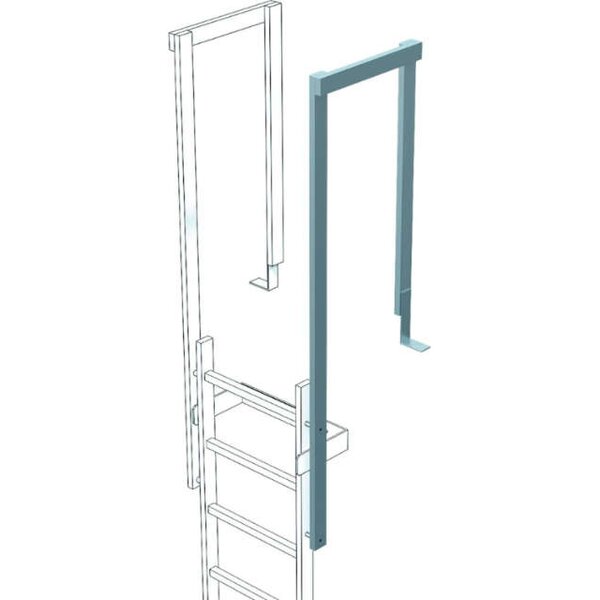 -Ausstiegsholm (abgewinkelt) für Steigleiter, mit Bodenwinkel Das Ausstiegsgeländer ist nur in Kombination mit geraden Ausstiegsholmen einsetzbar.