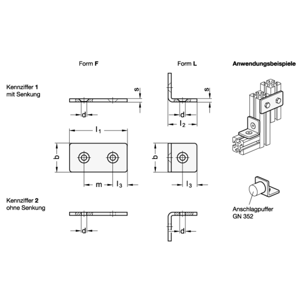 GANTER Lasche mit Senkbohrungen, schwarz Ku-beschichtet