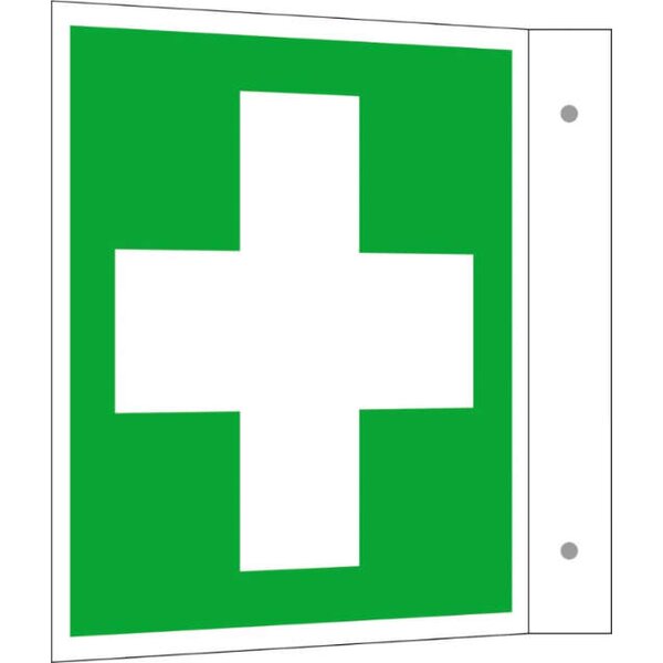 Hinweisschild NEUTRALE PRODUKTLINIE, Alu B200xH200 mm Fahne Erste Hilfe langnachleuchtend