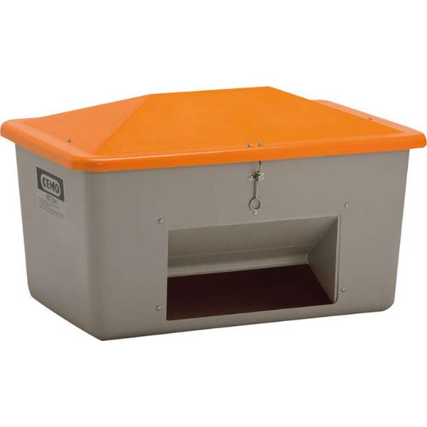 Streugutbehälter CEMO, 1100 l B1630xT1210xH1010 mm mit Entnahmeöffnung grau/orange CEMO