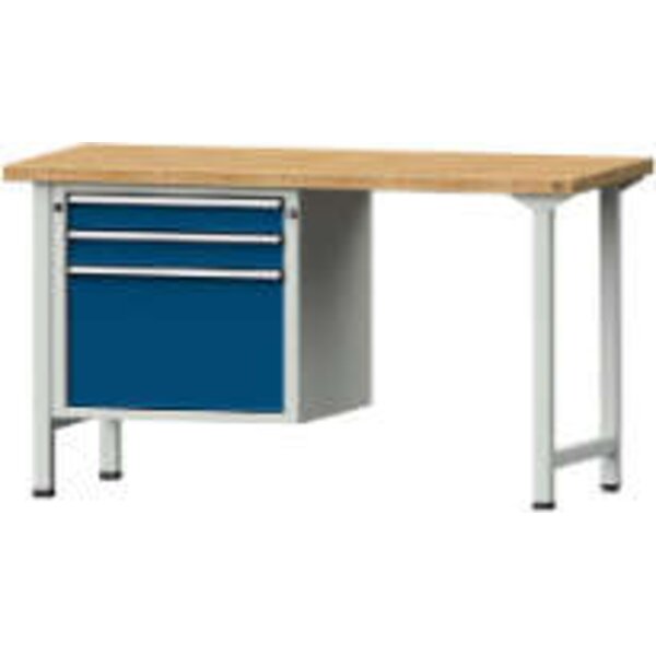 -Kombiwerkbank (Serie V) mit Schubladenunterschrank hängend, mit 3 Schubladen (2x90, 1x360 mm), lichtgrau/enzianblau Die Kombiwerkbänke der Serie V haben eine Gesamttraglast von 800 kg mit Hänge-Unterbauschrank.
