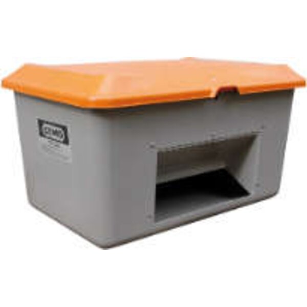 Streugutbehälter CEMO, 400 l B1210xT820xH670 mm mit Entnahmeöffnung grau/orange