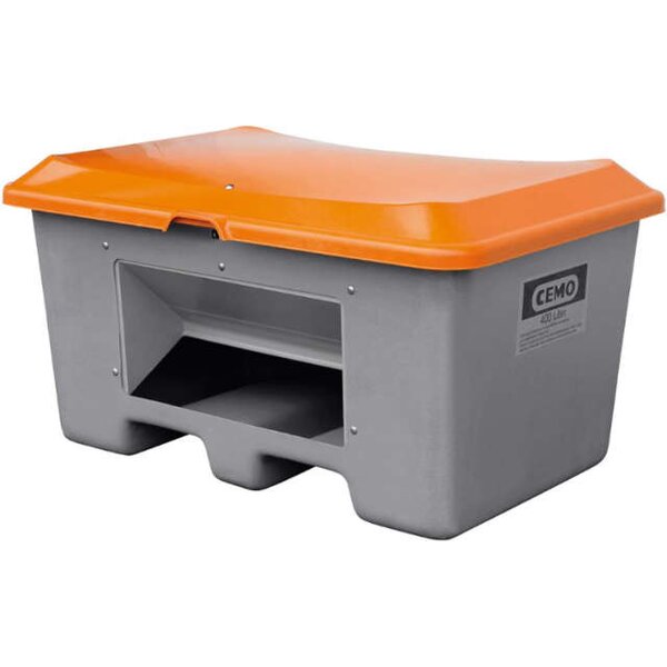 Streugutbehälter CEMO, 400 l B1210xT820xH670 mm mit Entnahmeöffnung grau/orange