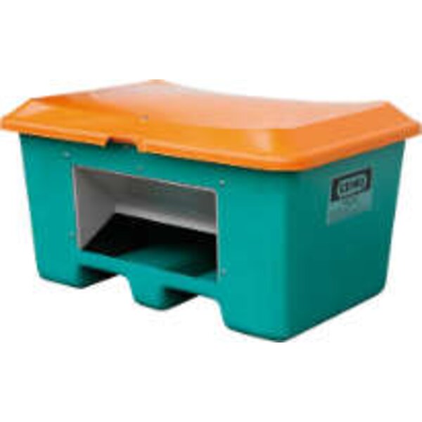 Streugutbehälter CEMO, 400 l B1210xT820xH670 mm mit Entnahmeöffnung grün/orange