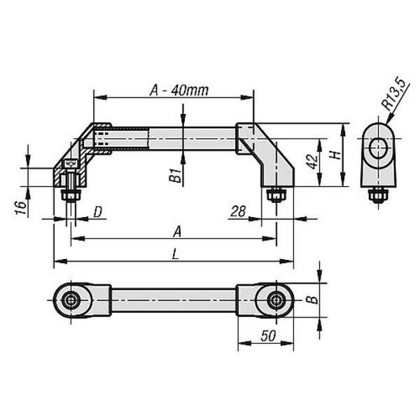ROHRGRIFF A=200, L=230, D=M08X30, H=55,5, FORM:B, ALUMINIUM SCHWARZ KUNSTSTOFFÜBERZUG GERIFFELT,