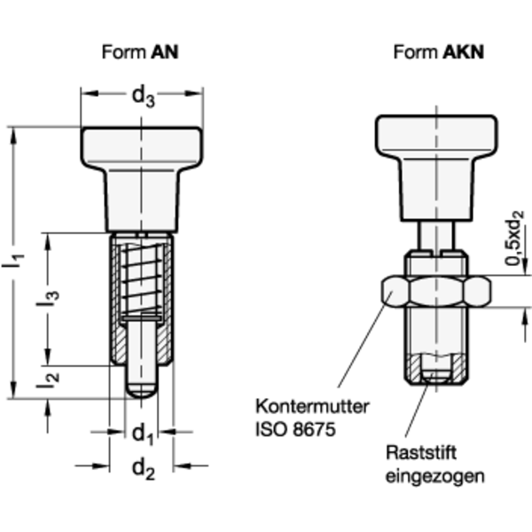 - Form: AKN - mit Kontermutter, mit Edelstahl-Knopf