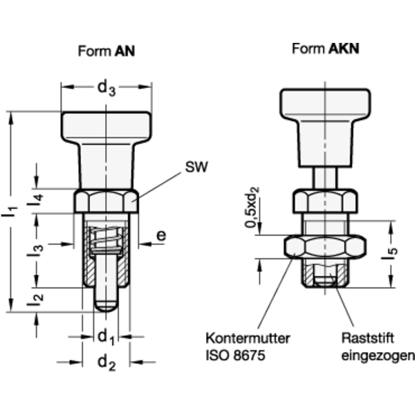 - Form: AKN - mit Kontermutter, mit Edelstahl-Knopf