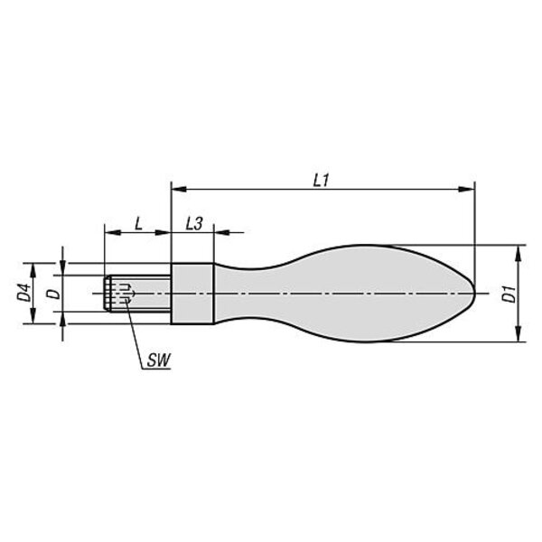 BALLENGRIFF FESTSTEHEND, FORM:E ALUMINIUM, KOMP:STAHL, L1=50