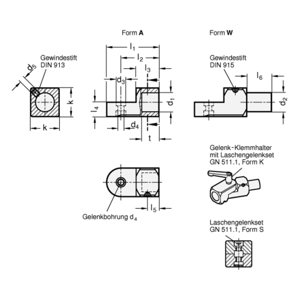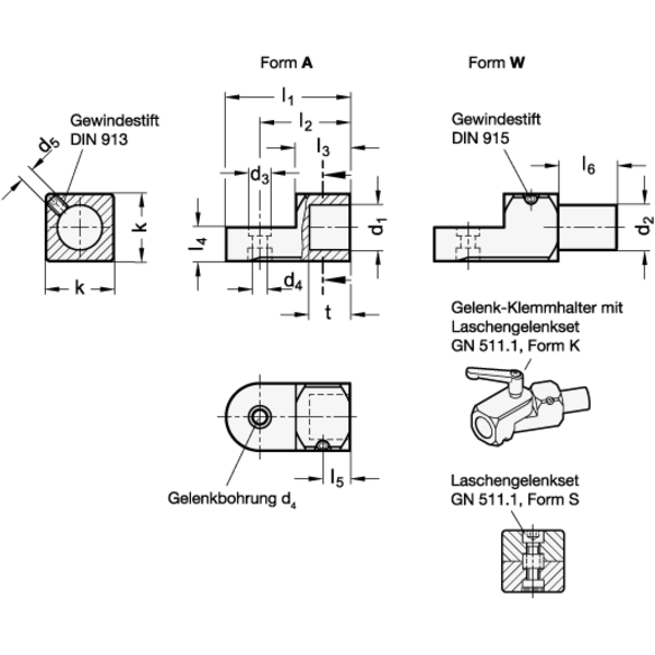 GANTER T-Laschen-Klemmhalter mit Bohrung, schwarz elox.