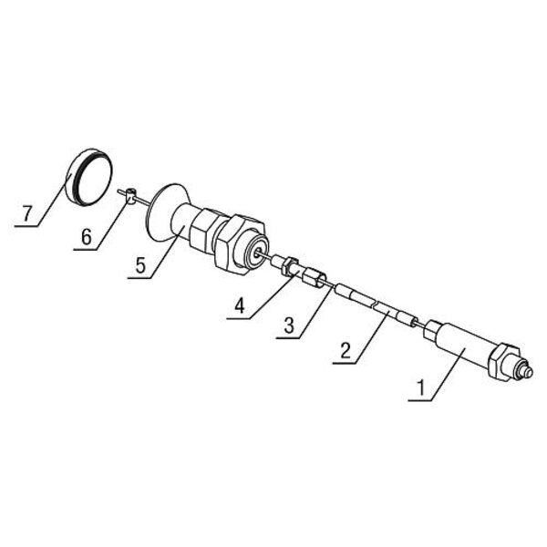 Alternativ zum Betätigungselement dient der beiliegende Schraubnippel (Ø5 x 7 mm) zur Einbindung eines individuellen Betätigungselements in das System.