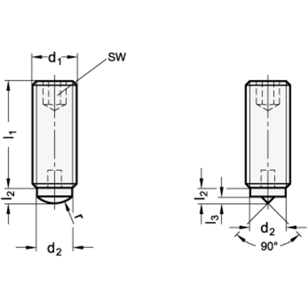 GANTER Gewindestifte, Druckzapfen mit Halbkugel