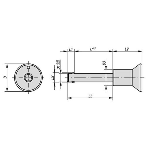 KUGELSPERRBOLZEN MIT PILZGRIFF, D1=10, L=60, L1=9, L5=69, EDELSTAHL, KOMP:EDELSTAHL