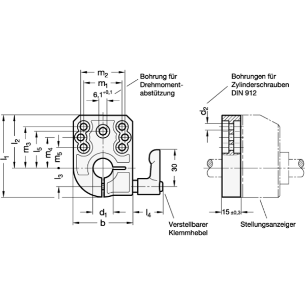 Klemmplatten GN 953.7 werden in Verbindung mit Stellungsanzeigern GN 953 und GN 953.2 eingesetzt. Über die Befestigungsbohrungen können marktübliche Bohrbilder abgedeckt werden.