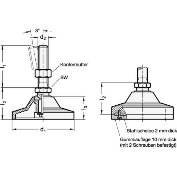 GANTER ELESA-Stellfuß ohne Mutter, ohne Gummiauflage