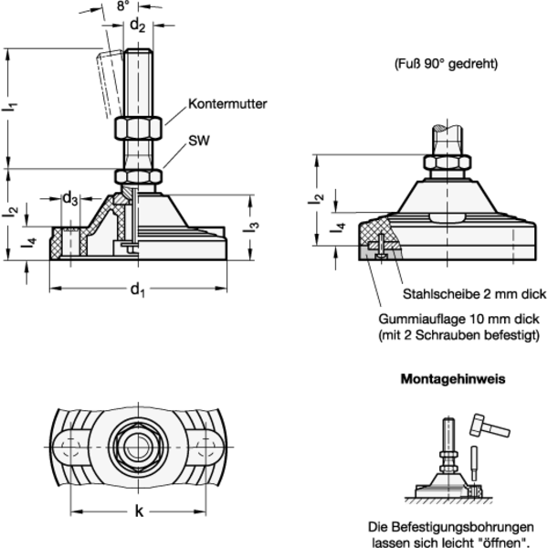 GANTER ELESA-Stellfuß mit Mutter, mit Gummiauflage