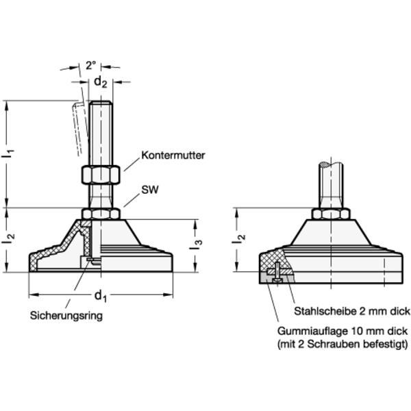 Stellfüße GN 246 zeichnen sich durch eine hohe statische Belastbarkeit aus. Die kostengünstige Verbindung Verstellspindel / Fuß lässt allerdings nur eine Auslenkung von ± 2° zu.