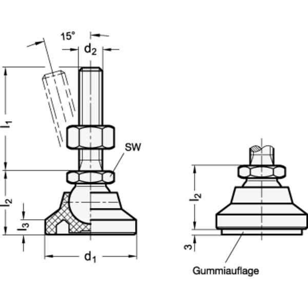 Gelenkfüße, Fuß Kunststoff, Verstellspindel Stahl