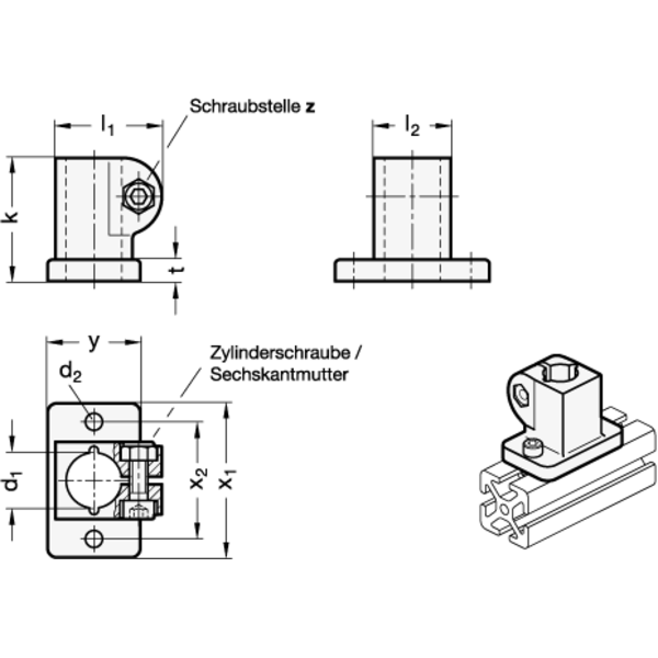 GANTER Edelstahl Fuss-Klemmverbinder mit 2 Befestigungsb.