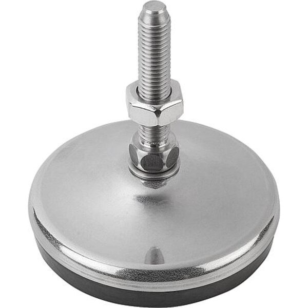 Stellfüße aus Stahl oder Edelstahl mit drehbar gelagerter Gewindespindel und Gummi-Aufstellfläche. Die massive Gummiauflage ist durch aufvulkanisieren fest mit dem Blechteller verbunden. Die Gummiauflage hat eine ausgezeichnete Bodenhaftung. Sie wirkt körperschalldämmend und erschwert die Übertragung von Schwingungen und Stößen auf den Boden.