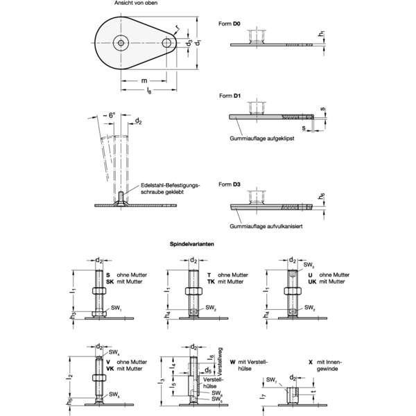 - Form (Fußteller): D3 - mit Gummiauflage, aufvulkanisiert, schwarz