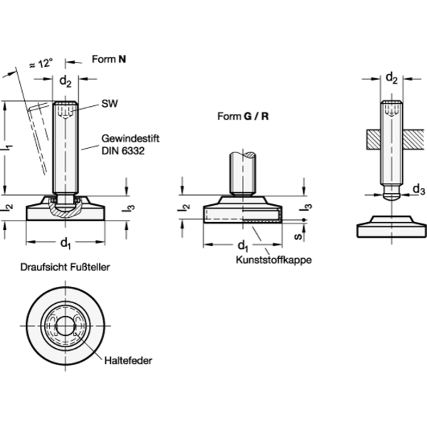 Gelenkfüße GN 6311.6 werden zum Aufstellen und Nivellieren von Geräten und Vorrichtungen verwendet.