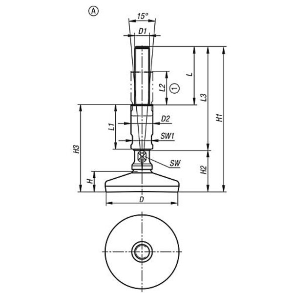 STELLFUß FÜR HYGIENEBEREICH, FORM:A OHNE BEFESTIGUNGSBOHRUNG, D=100 M16X140, ...