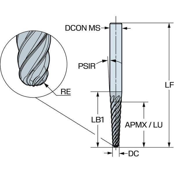 SANDVIK CoroMill® Plura konischer Kugelschaftfräser aus Vollhartmetall