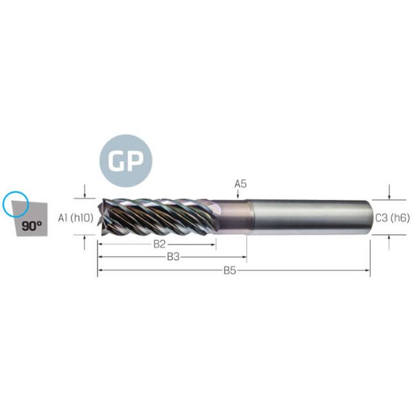 Schaftfräser VHM PREMUS GP, GP, 3 × A1, DLC, HA