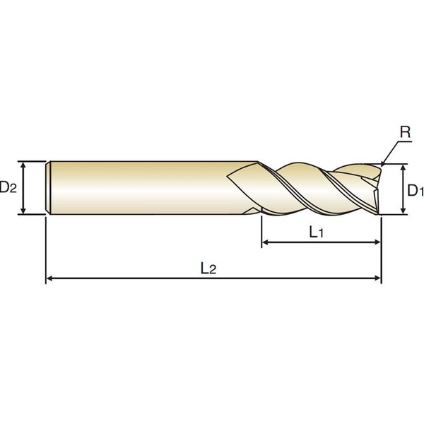 YG1 VHM Schaftfräser ALU-POWER Ø3(R0.5)X6X12X57 mm
