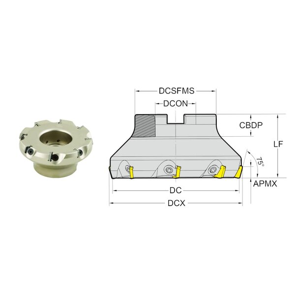 YG1 Wendeplattenfräser, F75-SPKN12-D50Z4S22-WOC