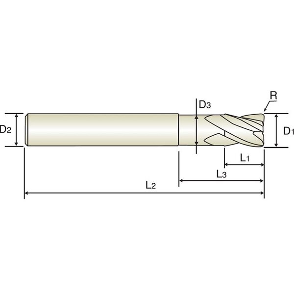YG1 VHM Schaftfräser D-POWER, Ø12(R1)X12X15(80)X125mm