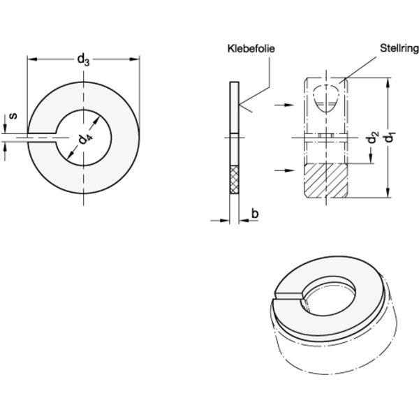 Dämpfungsscheiben GN 7062.30 sind als Zubehör für geschlitzte Stellringe ausgelegt und werden mittels Klebefolie, bevorzugt auf der rillenlosen Stellringseite, befestigt. Sie absorbieren leichte Stöße und wirken geräuschmindernd beim Kontakt der Stellringe mit anderen Bauteilen.