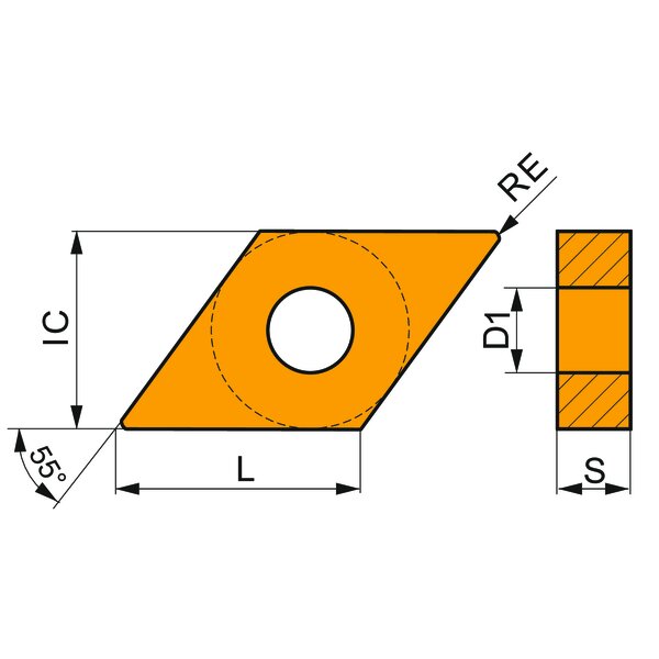 - Formcode Wendeschneidplatte: D - rhombischer 55° eingeschlossener Winkel