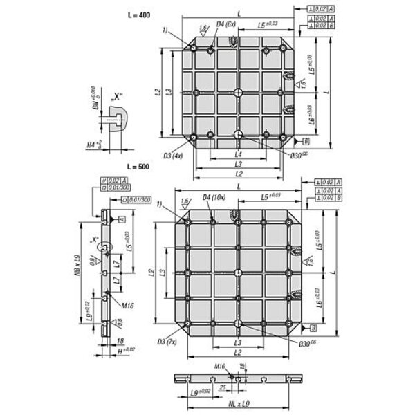PALETTE MIT T-NUT, FORM:C L=500, H=60, BN=14, GJL300