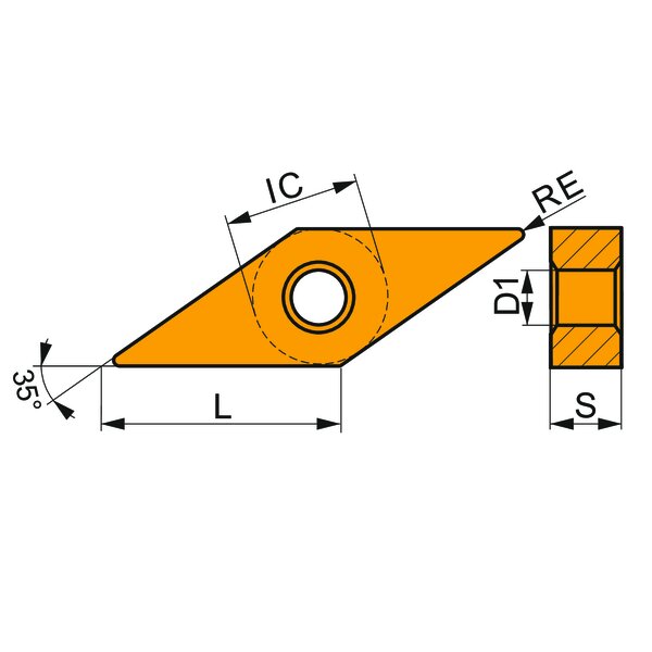 - AusführungV - rhombischer 35° eingeschlossener Winkel