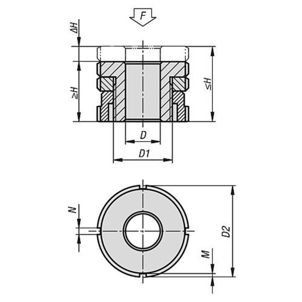 HÖHENVERSTELL-ELEMENT NIEDRIGE FORM, D=6,6 VERGÜTUNGSSTAHL, D2=25