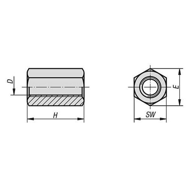 KIPP Verlängerungsmutter 3D Hoch M16, SW 24