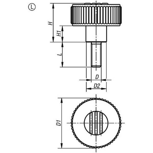 RÄNDELRAD GR.1, D1=40 D=1/4-20X30 , FORM:L, THERMOPLAST SCHWARZGRAU RAL7021, ...