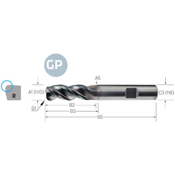 Torusfräser VHM PREMUS GP, GP, lang, Eckenradius, DLC, HB