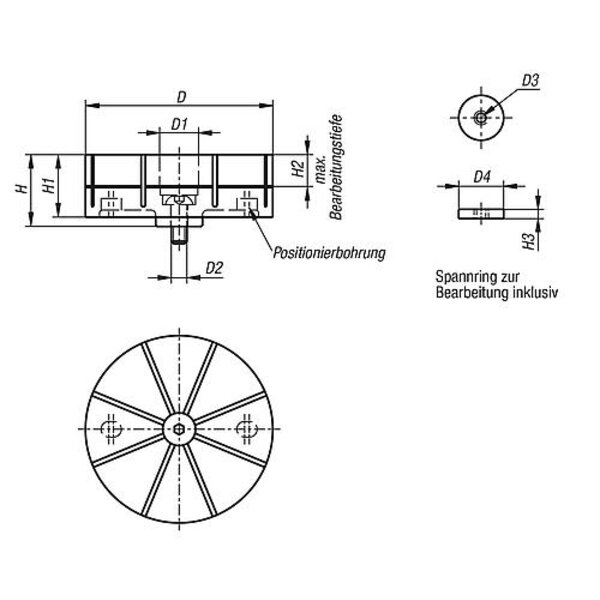 SPANNZANGE FÜR AUßENSPANNUNG M10 H=40 ALUMINIUM HOCHFEST, BLAU ELOXIERT, D=90