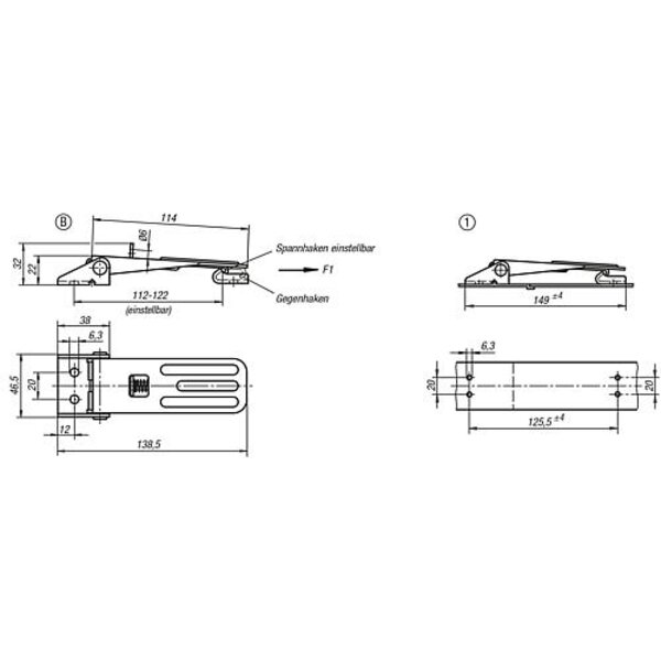 Die Haltekraft F1 bezieht sich auf den Spannverschluss nicht auf den Gegenhaken.