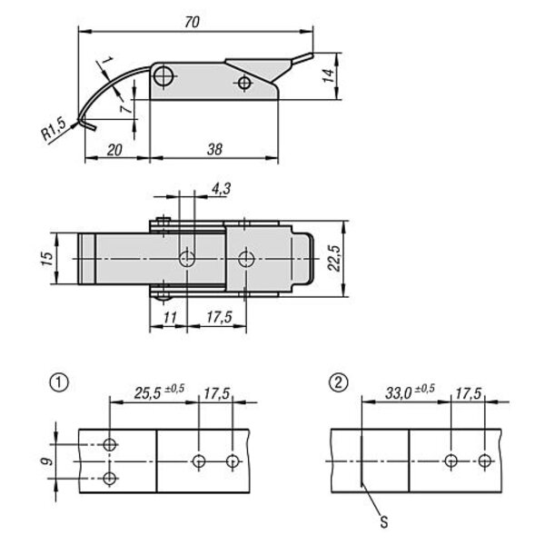 SPANNVERSCHLUSS MIT FEDERBÜGEL, ANSCHRAUBBOHRUNG VERDECKT, FORM:A, EDELSTAHL 1.4301 BLANK, F1=500