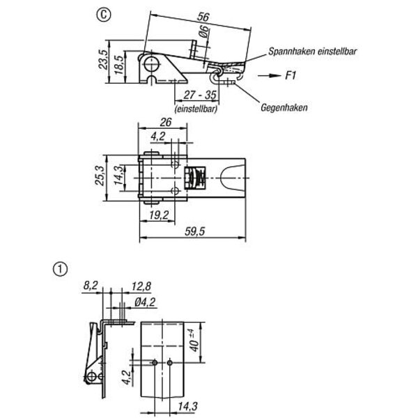 Die Haltekraft F1 bezieht sich auf den Spannverschluss nicht auf den Gegenhaken.