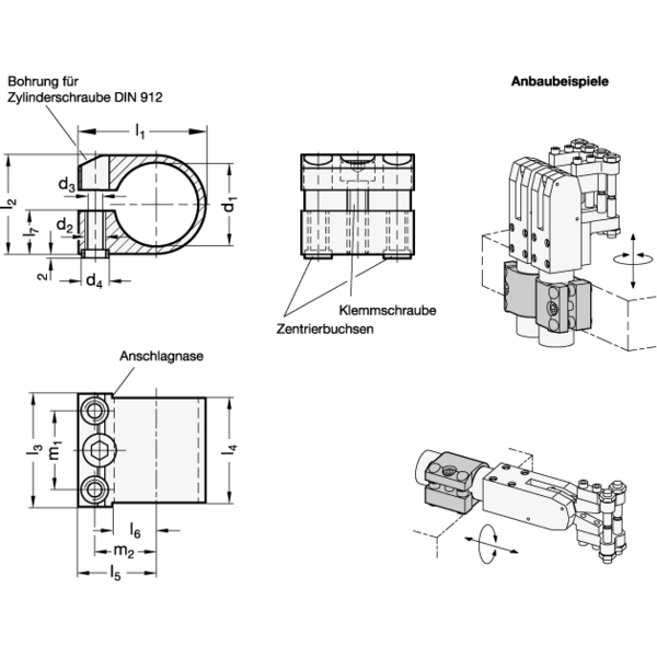 Weitere Klemmhalter für die Größen d1 = 40 (Kolben-Ø 32) und d1 = 50 (Kolben-Ø 40) bietet das Rohrklemmverbinder-Programm.