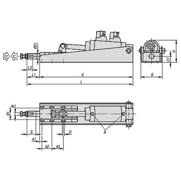KIPP Pneumatik-Schubstangenspanner, Form B, P=600 daN