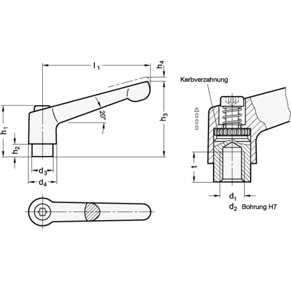 - Produktartverstellbarer Klemmhebel