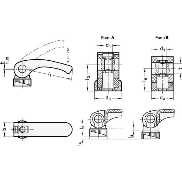 Exzenterspanner, Kunststoff, mit Gewindebuchse Stahl