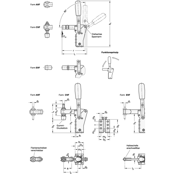 - Form: CVF - offener Spannarm, mit 2 Flankenscheiben und Andrückschraube GN 708.1
